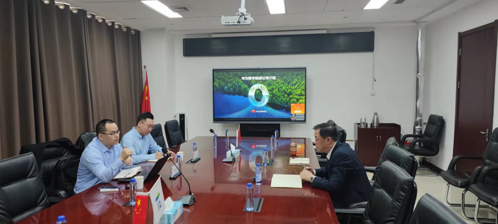 3月11日,为强化水发能源集团能源数字化建设顶层设计,提升集团清洁能源项目建设管理水平,推进集团清洁能源基础设施的集约建设和安全高效,水发能源集团副总经理杨德海、数字化中心成员与华为数字能源公司经理吴透明共同探讨清洁能源数字化具体实现的方式、智慧储能技术革新方面和实际中应用相关问题。