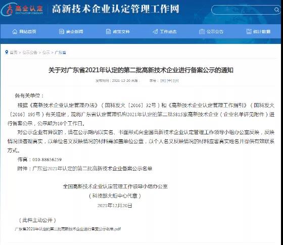 近日,全国高新技术企业认定管理工作领导小组办公室对广东省2021年认定的高新技术企业进行公示,水发兴业能源权属公司珠海中建兴业绿色建筑设计研究院有限公司荣列榜单,首次通过高新技术企业认定。