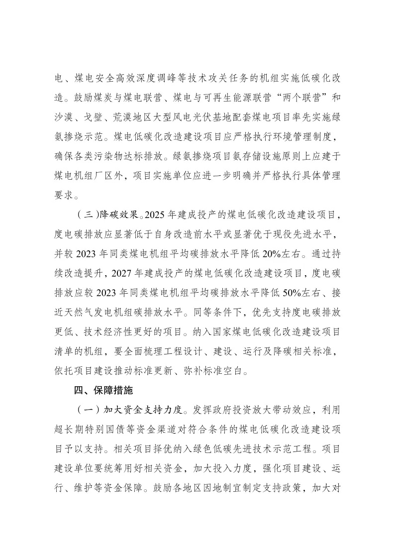 (二)机组条件。鼓励承担煤电工业热电解耦及灵活协同发电、煤电安全高效深度调峰等技术攻关任务的机组实施低碳化改造。鼓励煤炭与煤电联营、煤电与可再生能源联营“两个联营”和沙漠、戈壁、荒漠地区大型风电光伏基地配套煤电项目率先实施绿氨掺烧示范。煤电低碳化改造建设项目应严格执行环境管理制度,确保各类污染物达标排放。绿氨掺烧项目氨存储设施原则上应建于煤电机组厂区外,项目实施单位应进一步明确并严格执行具体管理要求。