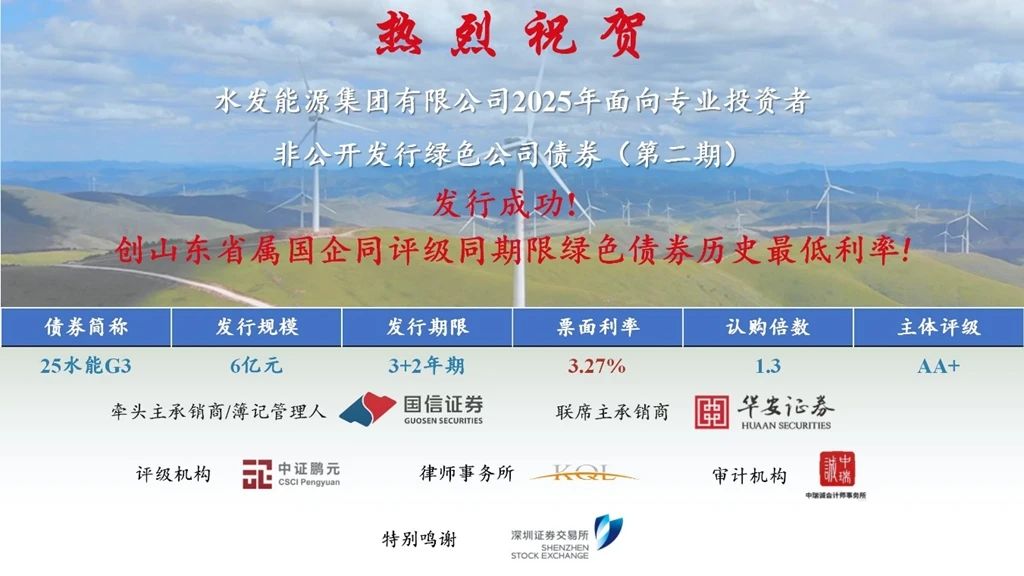 捷报!水发能源集团成功发行六亿绿色公司债券 创山东省属国企同评级同期限绿色债券历史最低利率