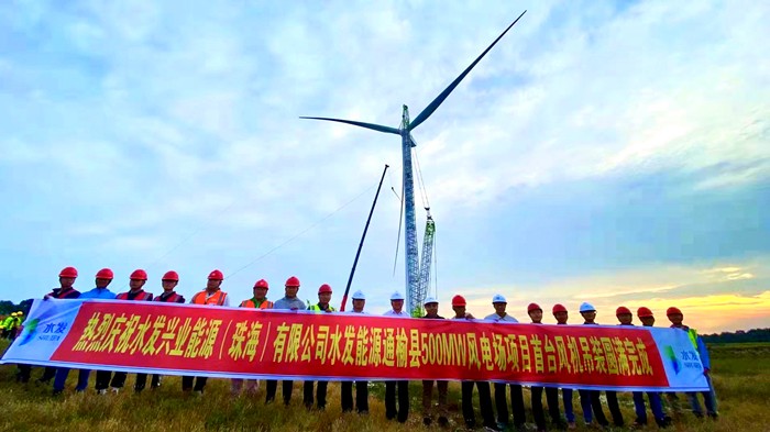 水发能源通榆县500MW风电场首台风机顺利吊装完成 项目建设全面进入安装施工阶段