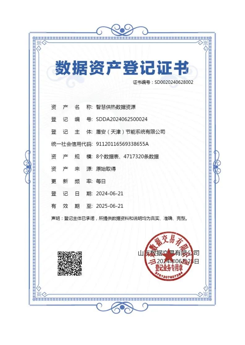 水发首单 盾安(天津)节能系统有限公司完成供热行业数据资产入表
