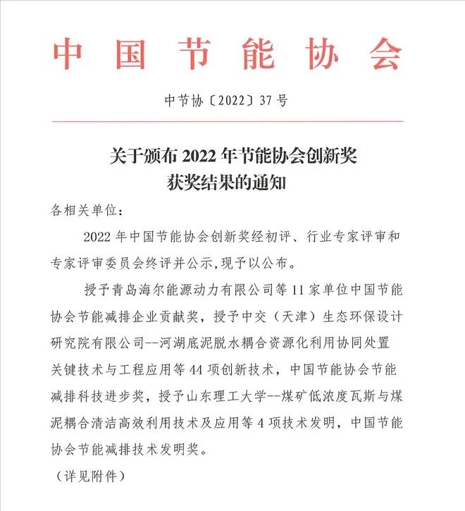 水发兴业能源斩获中国节能协会节能减排科技进步奖一等奖